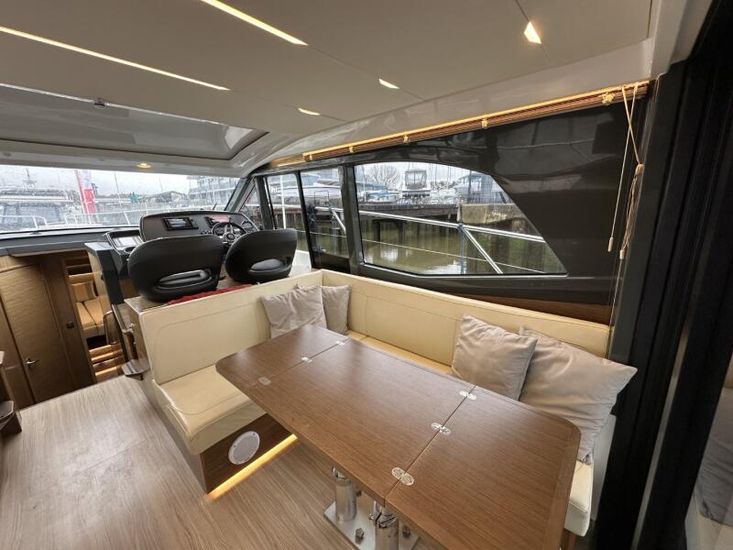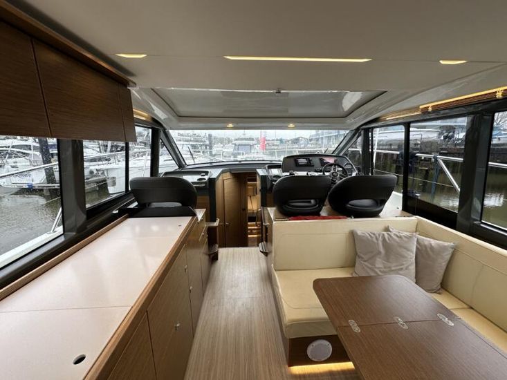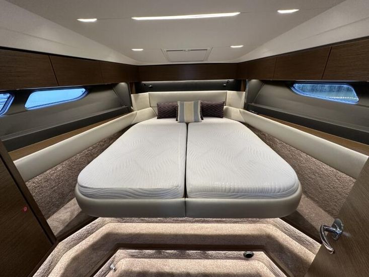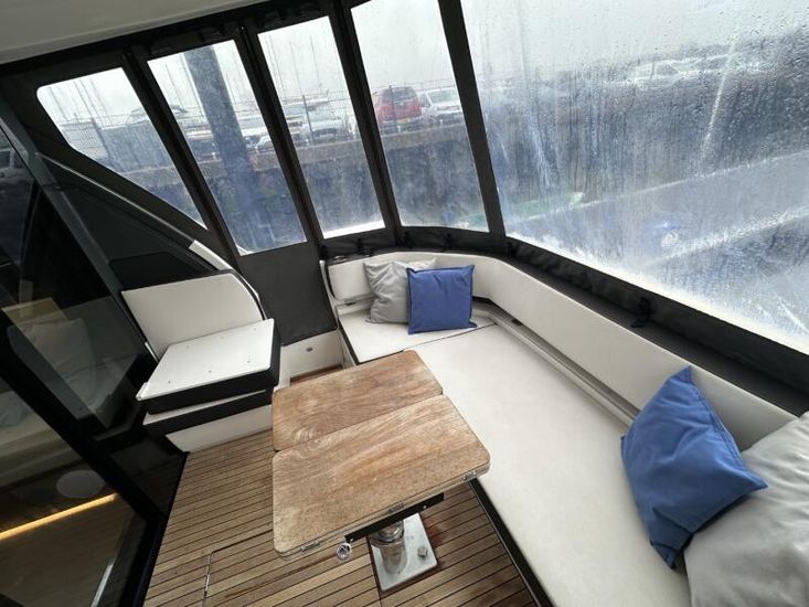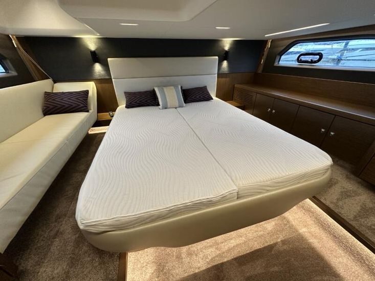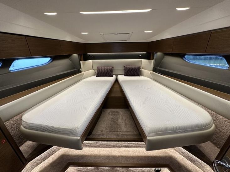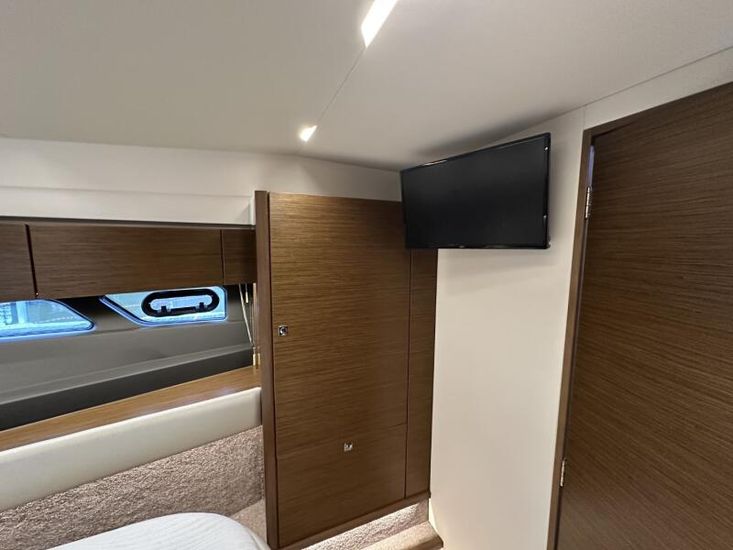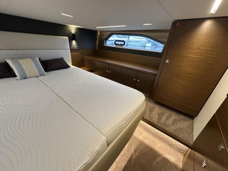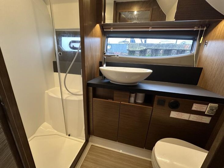 Items fitted to "Swysh"Style Plus Package, comprising;Exterior Cockpit upholstery Silvertex “white ice & carbon” Interior wood colour “Walnut”“Elm” Flooring Interior Upholstery leather Ivory FUSION Marine Audio Basic Package incl. aux bluetooth dongle, 2 speakers in saloon and 2 speakers in Cockpit (or Flybridge) 1 x USB audio connection, Remote control at helm, connection to NMEA networkSmart Power Package, comprising:Refrigerator, 50l in separate GRP unit in cockpit; Bennett electric Trim Tabs;Bow thruster (100kgf), electric incl. operating battery; Mooring Kit (6 fenders, 4 mooring lines & 2 hidden stainless steel fender holders); Search Light with remote controlComfort Package, comprising: Exterior lighting package (including underwater, step, aft docking lights and side deck lighting); Luxury cold foam mattresses with memory top for two double beds;Camper cover; Light Package interior; Venetian blinds in cabins, saloon and bathroomsComfort Package upgrade: Luxury cold foam mattresses with memory top, one double and two single beds (only in combination with scissor berths) Navigation Package 'Advanced', comprising; 2x Simrad NSSevo3 9” Multifunction Display with integrated GoFree™ Wi-Fi; all-weather touch screen and expanded keypad on main helmstationSimrad RS35 VHF with inbuilt AIS Receiver + Simrad HS35 wireless handsetAutopilot with heading compassAft docking camera Sun pad upholstery, with foldable backrest incl. Bimini on foredeck Stainless steel cup holders on foredeck Bathing platform (Tenderlift), electro hydraulic lowering with teak (maximum Dinghy allowance 250kg) BBQ electric grill & sink with hot and cold water at the stern High quality drop-leaf cockpit table, manually lowering with infills to make sunbed Aft cockpit fabric electric sunroof (in place of standard glass skylight) Delta Anchor,16kg, incl. 50m chain, galvanized Electric anchor windlass with remote control in the anchor locker Manually lowering extendable table, to convert the settee to a berth, with infill cushions Sliding side window to port Microwave with grill Fisher and Paykel Drawer Dishwasher Grey water tank 120 L Scissor berth in forward cabin TV preparation in saloon, with locking swing arm bracket (without TV, only preparation for 12V) in saloon with cabling digital + analogue, with antenna (not in combination with 24" TV) TV preparation in cabins, including master cabin and forward cabins (without TV, only preparation for 12V). Saloon with cabling (digital + analogue) with antenna (not in combination with TV) Interior/ Exterior Scatter cushion set for interior and exterior 3 x TV (12v)Inverter for BBQHigh output 12v socket HeatingJoystick controlShore power cable