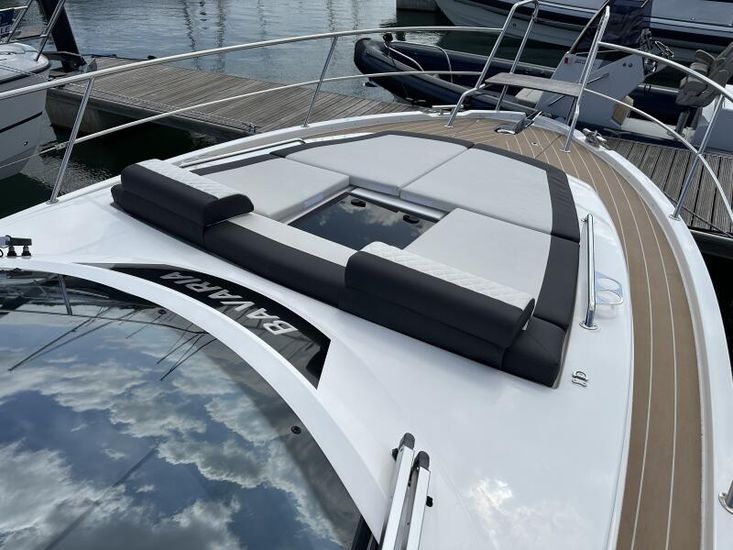 2024 Bavaria SR35 Hard Top in Night Blue metallic is fitted with twin Volvo Penta D4-300 diesel engines on sterndrives (2 x 300hp) including Aquamatic joystick and is available now.Amazing space and social areas combined with outstanding performance and handling make the SR35 top of the list in this sector of the market.This boat is available now and is very well-equipped including Comfort Package, Bow thruster, twin Simrad GPS/Plotters, Electric opening GRP sunroof, Autopilot and much more.Part exchange is welcome and competitive finance is available - please ask for a quotation. For more information or to arrange a viewing 7 days a week please contact Mark Oldrey on 07707 149474 or email mark@clippermarine.co.uk